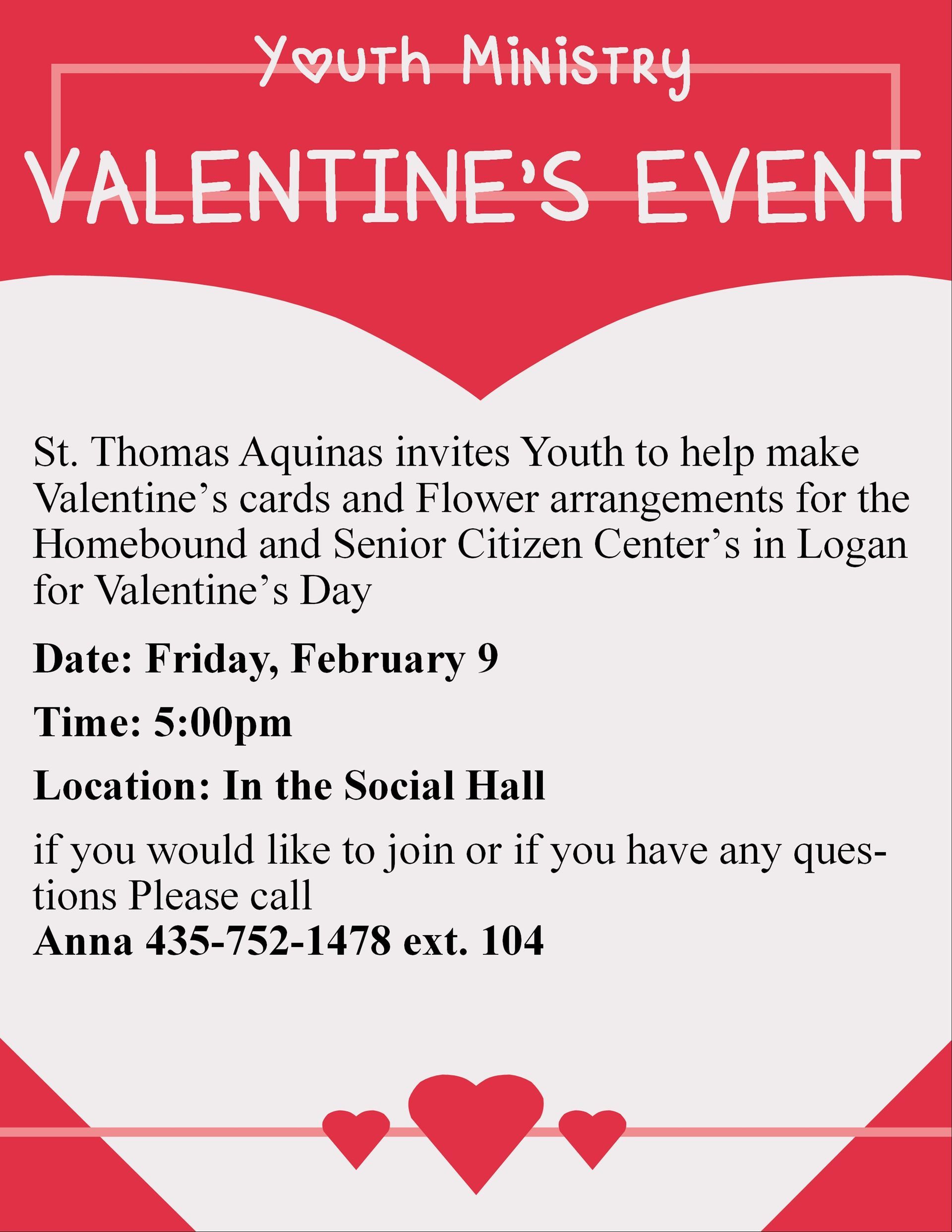 St. Thomas Aquinas Catholic Church wants our youths' faith and love in God to grow and become stronger. Our youth is the future of our church and they be involved in the church as much as anyone else. We want to create activities and events that are fun for our parish youth with our Church's faith in mind.